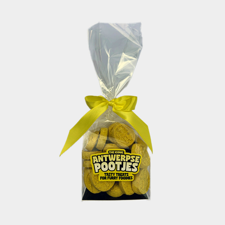 150g Antwerpse Pootjes met dezelfde onweerstaanbare vanille vibe, crunchy bite en vleugje kurkuma voor die golden glow.